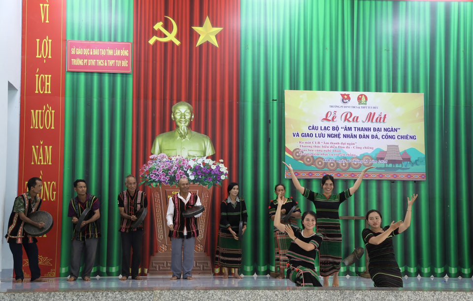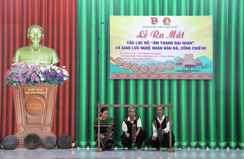 Tại buổi ra mắt, các nghệ nhân đến từ xã Quảng Tân và xã Tuy Đức đã biểu diễn đàn đá và cồng chiêng, mang đến không gian âm nhạc giàu bản sắc. Nhiều học sinh bày tỏ sự thích thú khi được giao lưu, đặt câu hỏi về kỹ thuật trình diễn, lịch sử hình thành nhạc cụ và vai trò của chúng trong đời sống cộng đồng các dân tộc bản địa.