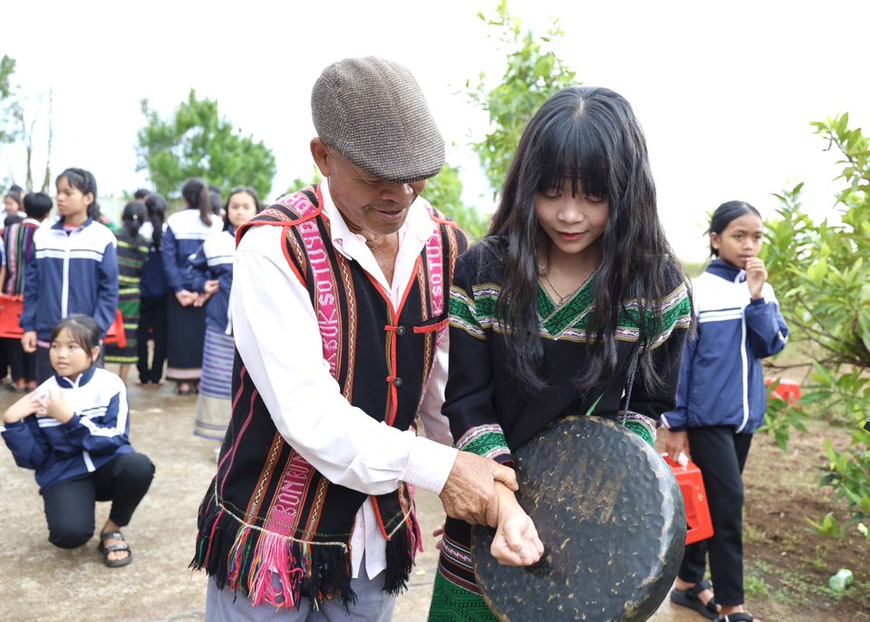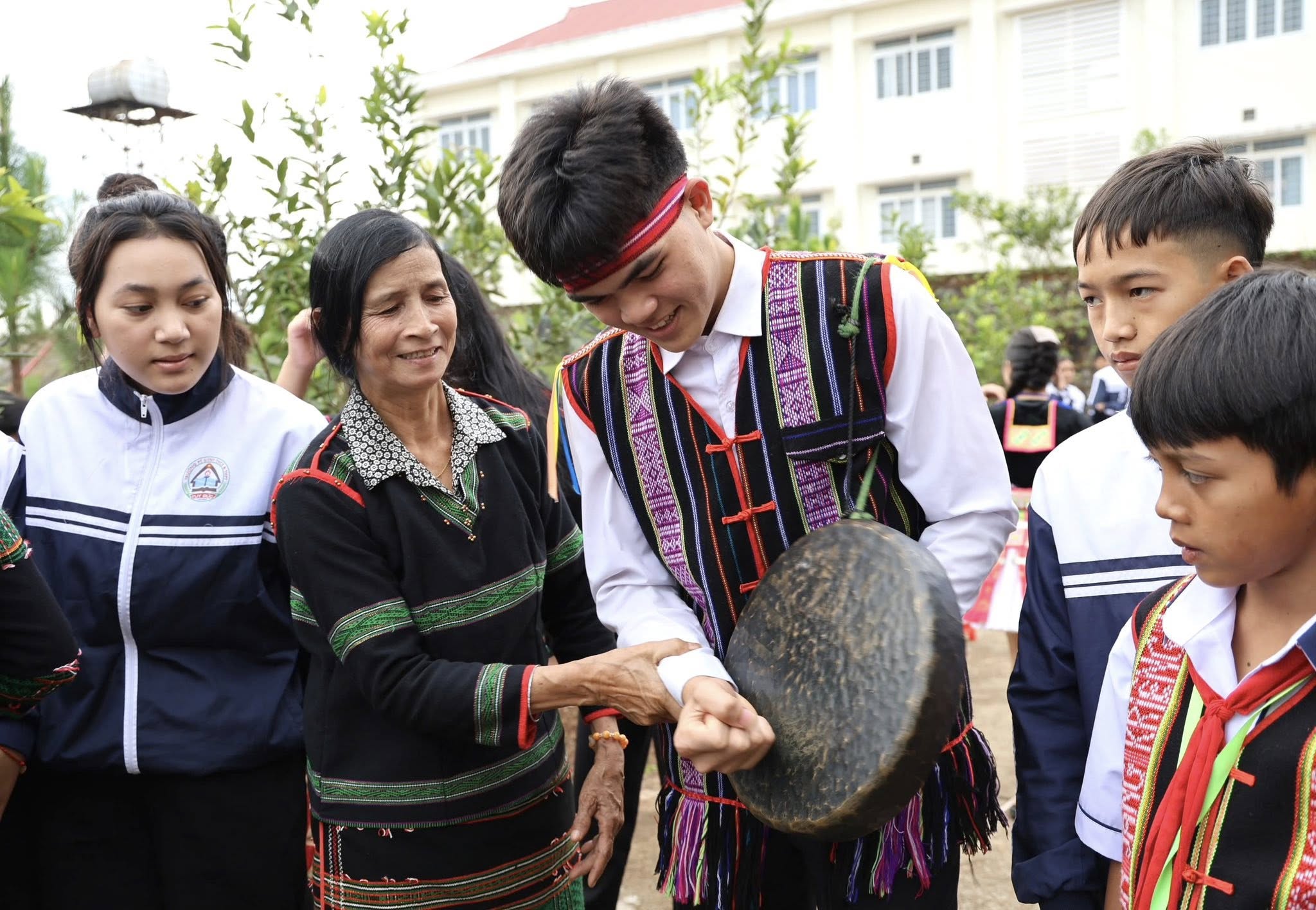Điểm nhấn của hoạt động là phần trải nghiệm thực hành. Học sinh được hướng dẫn trực tiếp cách tạo âm thanh từ đàn đá và thực hành các nhịp chiêng cơ bản. Việc tiếp xúc gần với nhạc cụ truyền thống giúp các em hiểu rõ hơn giá trị văn hóa của “không gian văn hóa cồng chiêng Tây Nguyên” – di sản văn hóa phi vật thể đại diện của nhân loại.