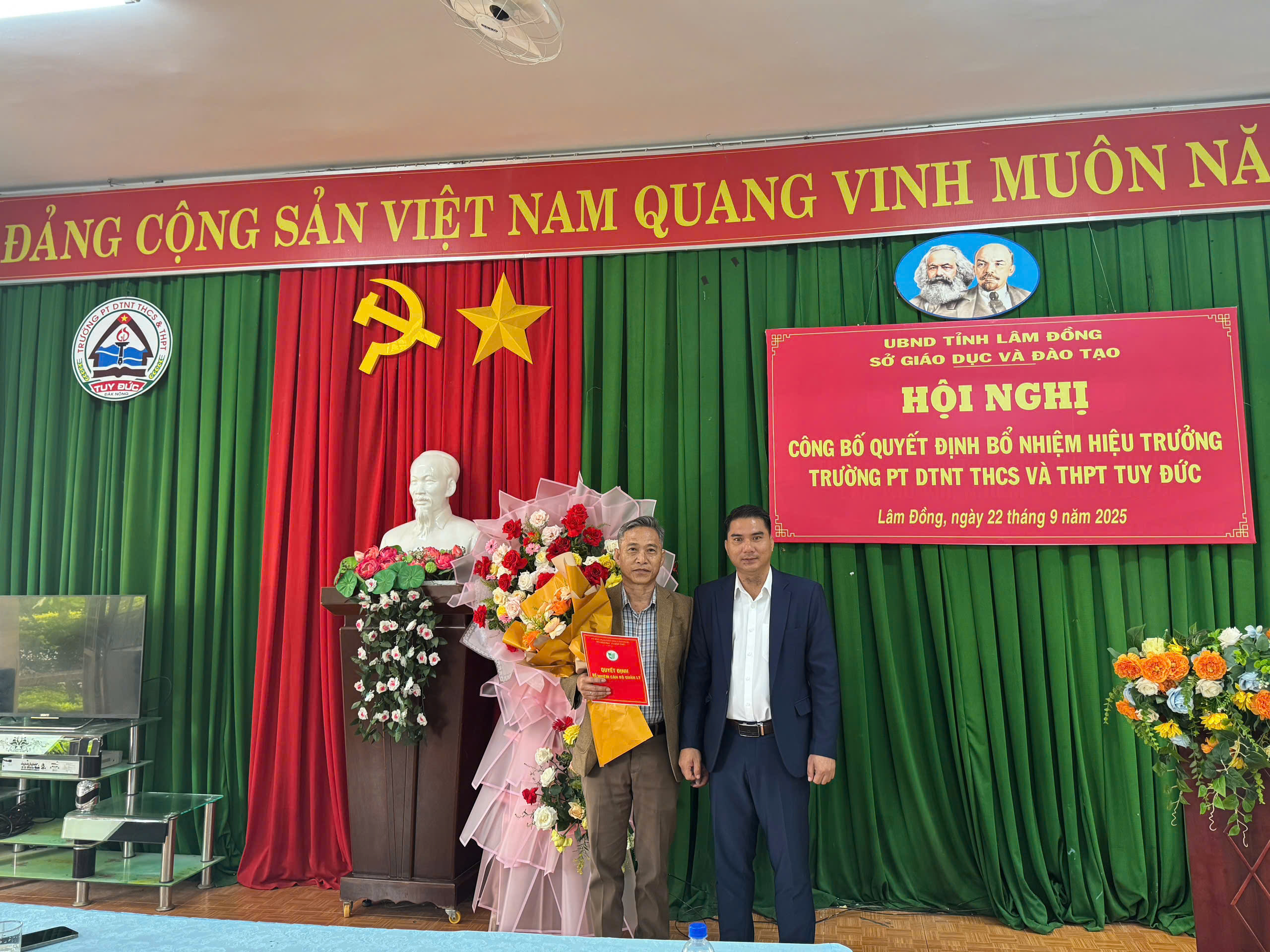 Sáng ngày 22/9/2025 tại trường PT DTNT THCS và THPT Tuy Đức, tổ chức Hội nghị công bố quyết định bổ nhiệm Hiệu trưởng trường PT DTNT THCS và THPT Tuy Đức và quyết định bổ nhiệm Hiệu trưởng trường THPT Lê Quý Đôn.